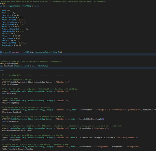 Source code for the general appearance asset.